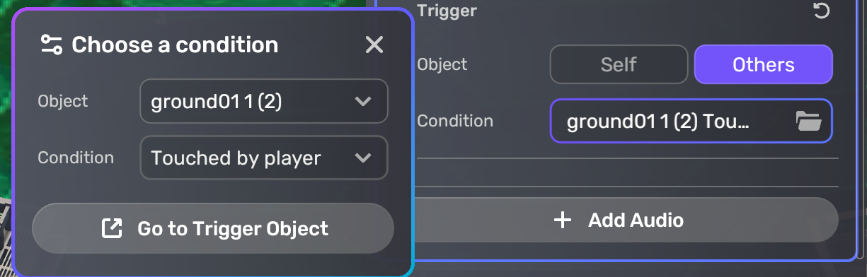 사운드를 재생 시킬 트리거 설정 영역이 있다.