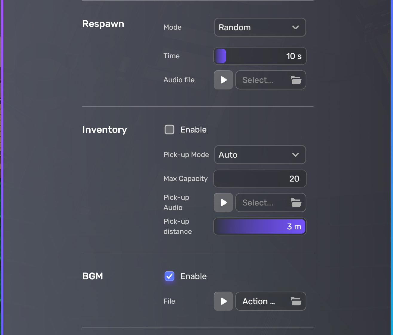 Gameplay 탭에서 Audio라는 컴포넌트를 발견할 수 있다.