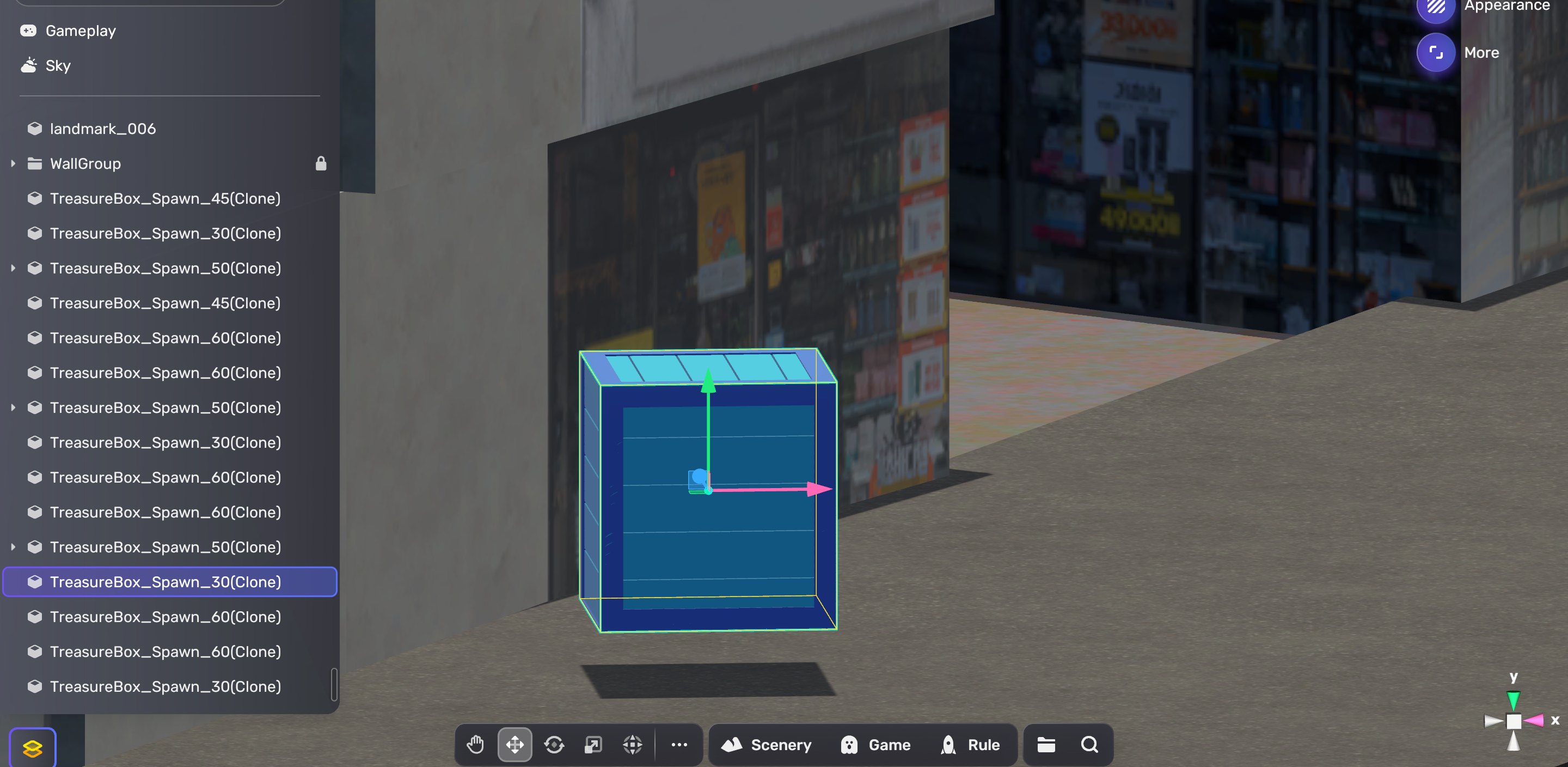 [YAHAHA] 게임 설정하기 [YAHAHA] 보물 프리펩 만들기 (tistory.com) 보물 프리펩이 완료 되었으므로 게임 룰에 관한 설정을 할 차례다. 우선 왼쪽 하단의 노란네모 여러개 버튼을 눌러 Explorer를 켜준 뒤 G